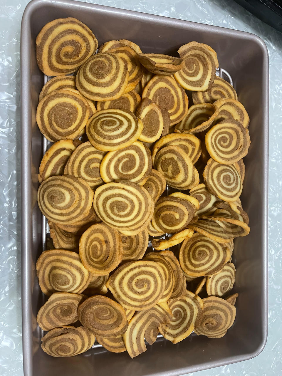 记录:成品很脆,味道不错,就是有点硬,下次每个面团各加1克苏打试试。