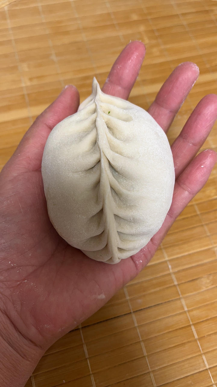 野菜羊肚菌韭菜馅儿的包子。春天的味道!