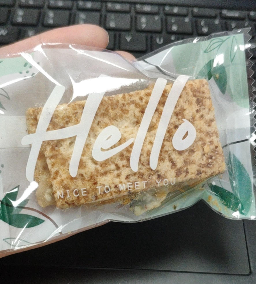 提供一个加速组合饼干和牛扎糖的方法,在有一定高度(顶住饼干侧边)的烤盘里摆两排饼干,牛扎糖直接洒两排饼干然后飞快的撒肉松再飞快的把两排饼干盖起来,比原方up提供的方案更适合大批量制作,920g方块酥的牛扎糖量我大概会在组合中途加热3次左右。(麻烦的地方是塑封555