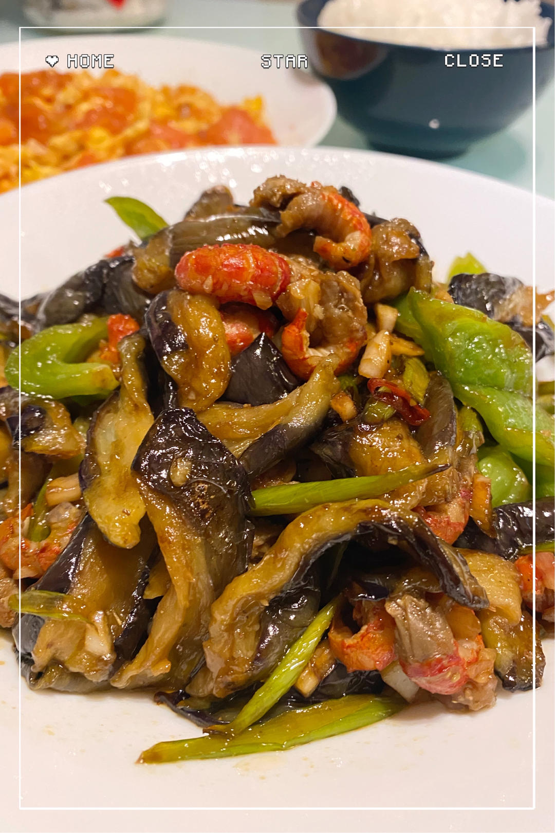 早安明天 做过 晚餐•2022年3月22日 杂炒-茄子青椒蒜苔小龙虾尾收拾冰箱余料,凑了这几样炒在一起味道还不错。茄子提前用盐腌10分钟,再用清水冲洗一下攥干水分,小龙虾尾去壳。翻炒,调个料汁加入出锅即可。#晚餐•2022年3月22日# 2022-03-22