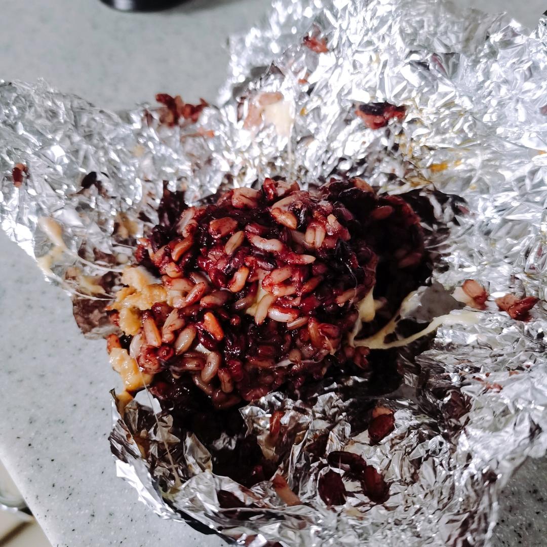 烤了个芝士猪肉碎爆浆饭团子哈哈