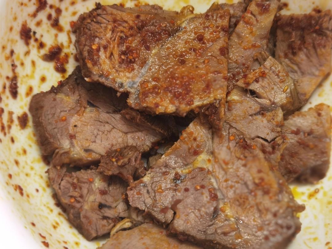 卤牛肉,青豆,莴菜蛋汤