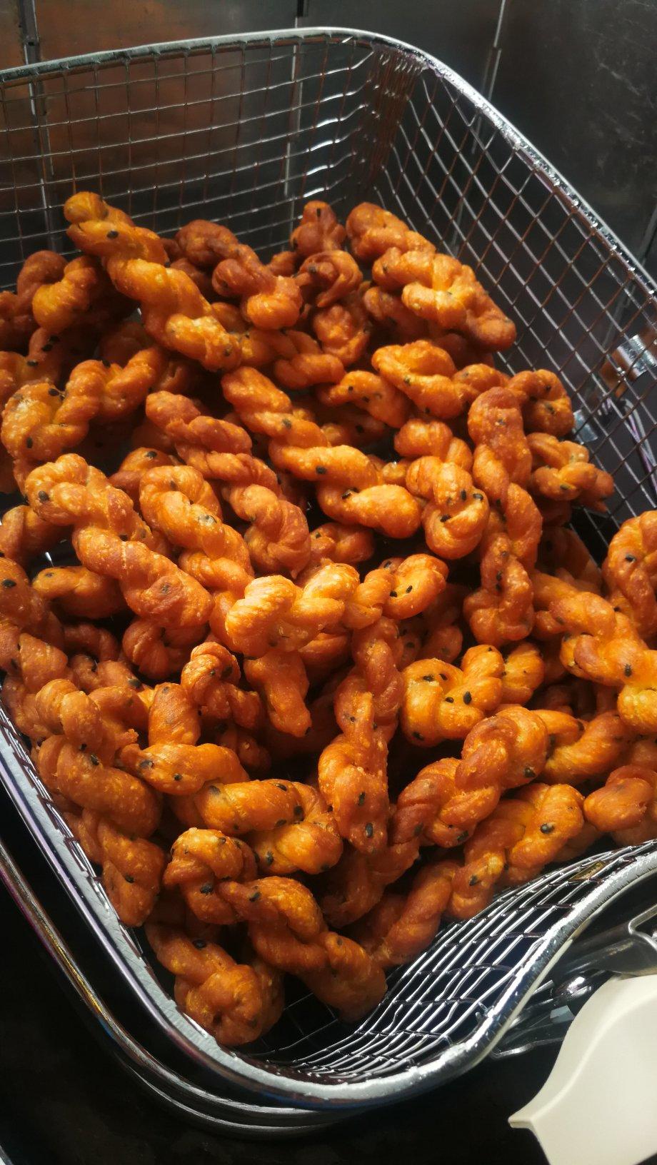 虹4808 做过 超爱🔆酥脆小麻花 第二次做。配方和技术稍加改进,口味更好,速度更快。加了个鸡蛋,水稍微少放点。发好的面团,用擀面杖擀成长方形,切成细长条,再卷成麻花,速度更快,更好卷。 2022-04-29