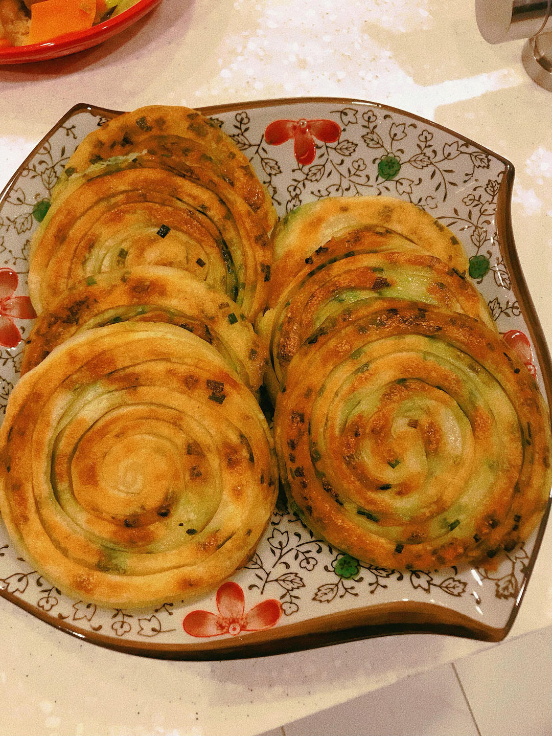 Fay小厨 做过 家常葱油饼 柔软多层 凉了也不硬 附细节视频详解 最近收到的蔬菜包里有整整一斤葱,做了很多葱油饼,家人都喜欢!整整被关了一个月,因为可以做美食,也没那么难熬了!快点恢复正常的生活吧,以前唾手可得的事,比如在山姆app上下一单极速达,变成了难以企及的奢望。也许,是生活一直在教我们学会珍惜吧!#晚餐•2022年5月1日# 2022-05-01