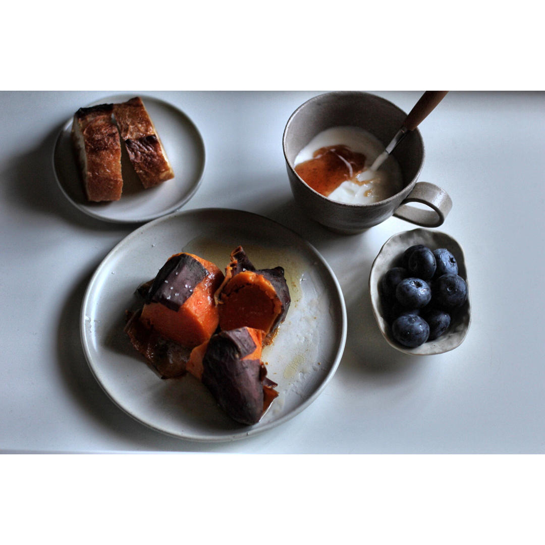 南小P 做过 Daily Breakfast 前段時間囤的蜜紅薯,用日式料理書上的方子,蒸至筷子可戳的程度,切開,撒鹽加黃油,軟香好吃。116 on the table 2022#2022,still breakfast# #早餐•2022年5月4日# 2022-05-04