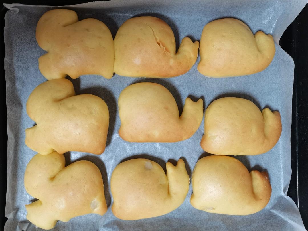 烤箱版,孩子选错温度,180℃烤了10分钟。像胖馒头,软乎乎挺好吃