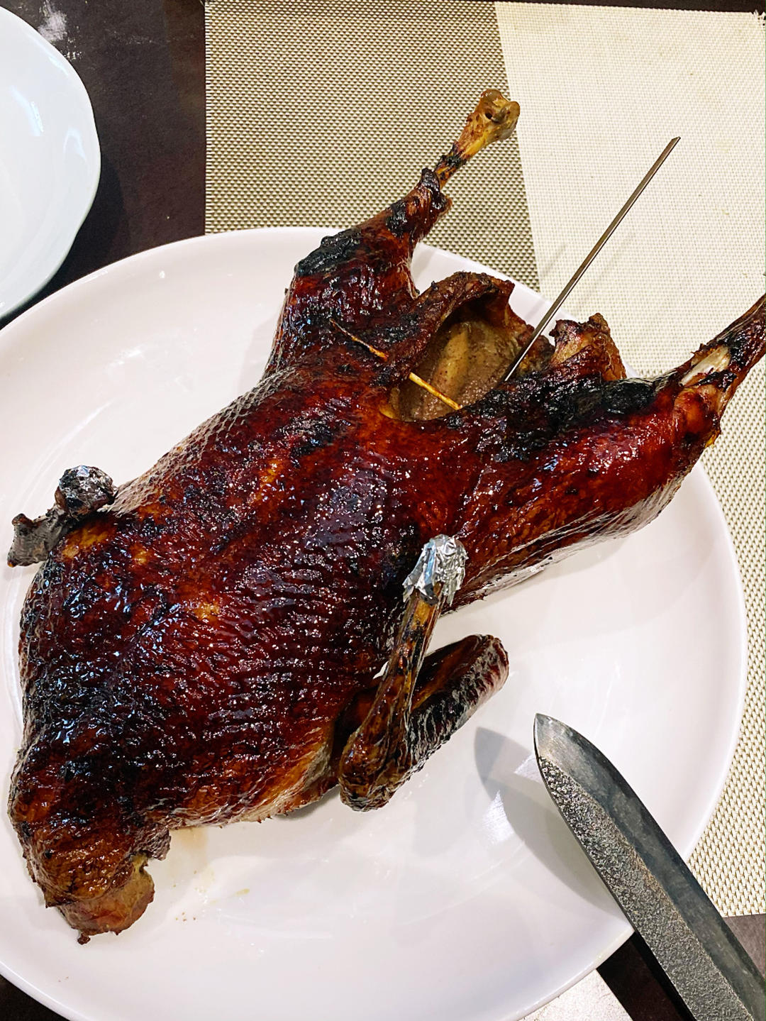 zhang_vivi_ 做过 零失败家庭烤鸭 第一次尝试烤鸭,算成功吧,哈哈。180度热风烤制1个小时15分钟。外皮的酥脆缺缺些,但真的好香好香。买的春卷皮,热一下,包着葱丝和黄瓜丝吃,好赞~#午餐•2022年5月14日# 2022-05-14