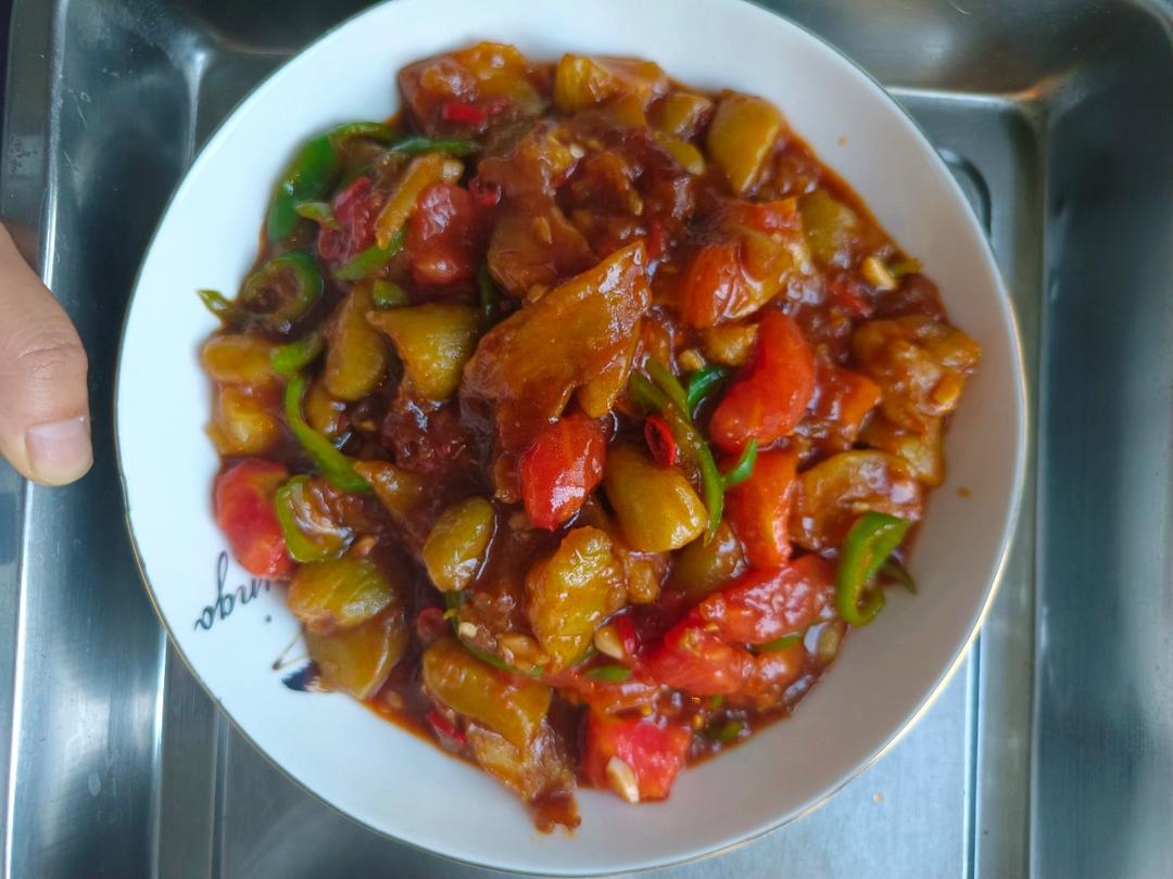 红烧茄子(佐西红柿尖椒)