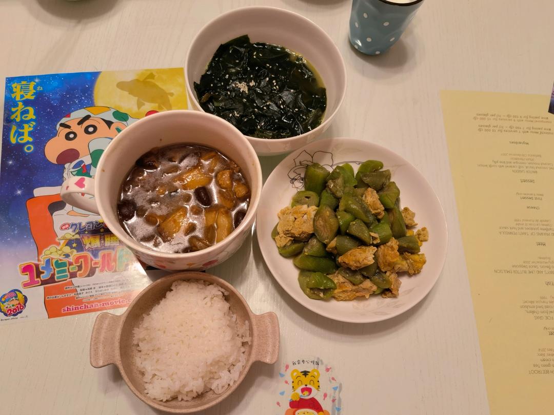 卤肉饭、丝瓜炒蛋、海带汤