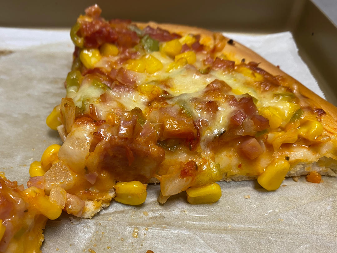 甜品汤圆 做过 培根火腿披萨 #晚餐•2022年6月14日# 意面酱,2片培根,半个洋葱,一个尖椒,三片火腿,半小碗玉米粒,2包奶酪碎。下次多放点奶酪碎。馅水分有些大,下次菜铺薄些。 2022-06-14
