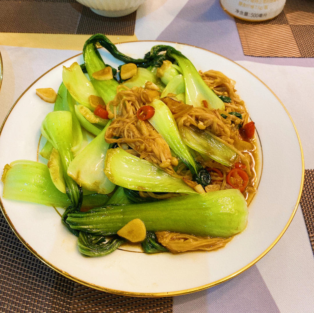 油菜炒金针菇