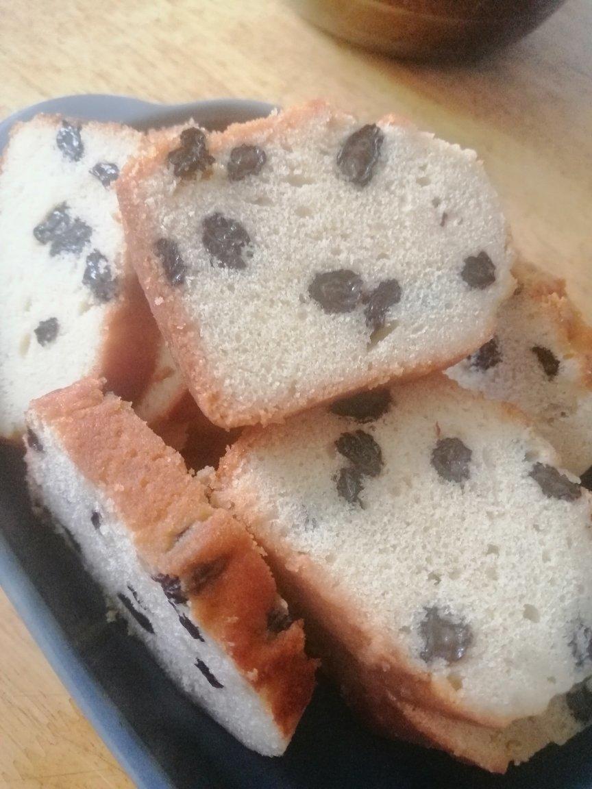 原配方×0.75的量,59克的糖甜味合适,面糊里加了1小勺泡葡萄干的朗姆酒,其它不变。放冰箱冷藏一天回油后切片尝了好好吃啊!我想如果在放一天回油进味以后应该更好吃。好香的朗姆酒味。黄油75克,细砂糖59克,全蛋液75克,泡葡萄干的朗姆酒一小勺,香草精几滴,低筋粉95克,泡打粉2.5克,葡萄干45克。糖水:水19克,细砂糖11克,朗姆酒23克。