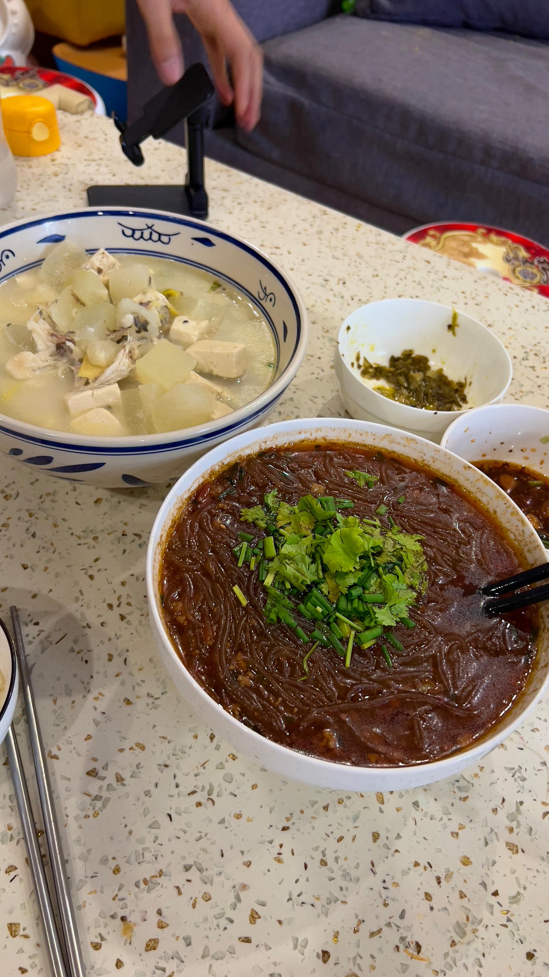 优优喜欢吃鲈鱼。鲫鱼豆腐汤份量太大,下次豆腐煮久点,蚂蚁上树水加多了点,豆瓣少放点,挖个荡荡放油里炒香再混转肉