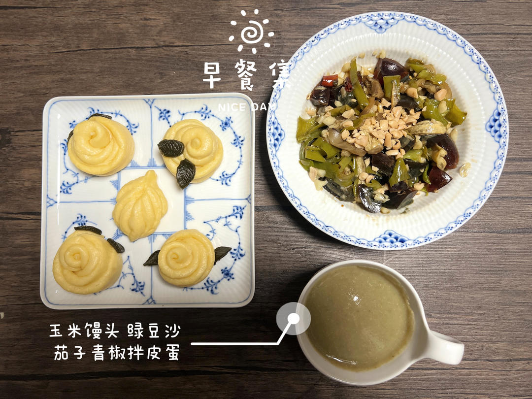 红薯土豆都是薯条 做过 9月早餐马拉松 茄子青椒拌皮蛋1、茄子青椒洗干净,切成粗条,放入烤箱185度,烤15-20分钟,至可脱皮2、烤好后放凉后,脱皮并撕成细条3、和皮蛋混合后,加入生抽、香醋、蒜泥、香花生碎(喜欢吃辣的加入红椒碎)4、拌匀。有可以擂的工具的,擂碎更好吃。茄子皮和青椒皮撕掉口感更好些。至于玉米馒头的长相,就当作练习手工劳动了,像花和叶子吗? #早餐早餐# 2022-09-04