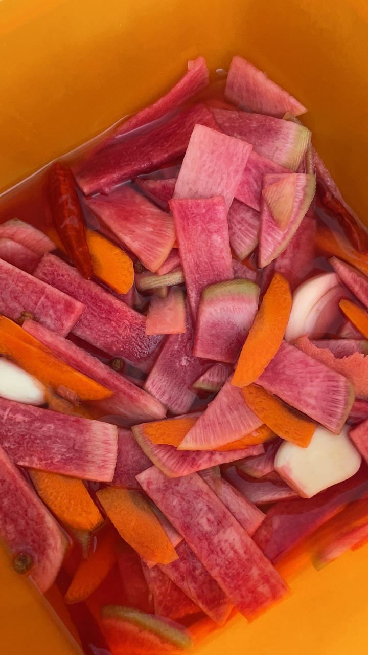 红心萝卜十白醋十少许花椒,酸爽可口