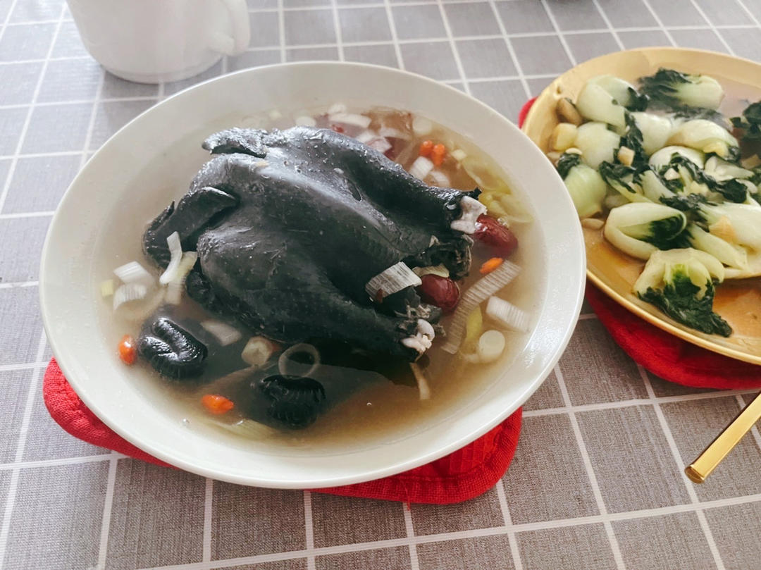 用乌鸡代替。学韩国人用的韩式碟子乘泡菜好和胡椒盐巴。哈哈哈