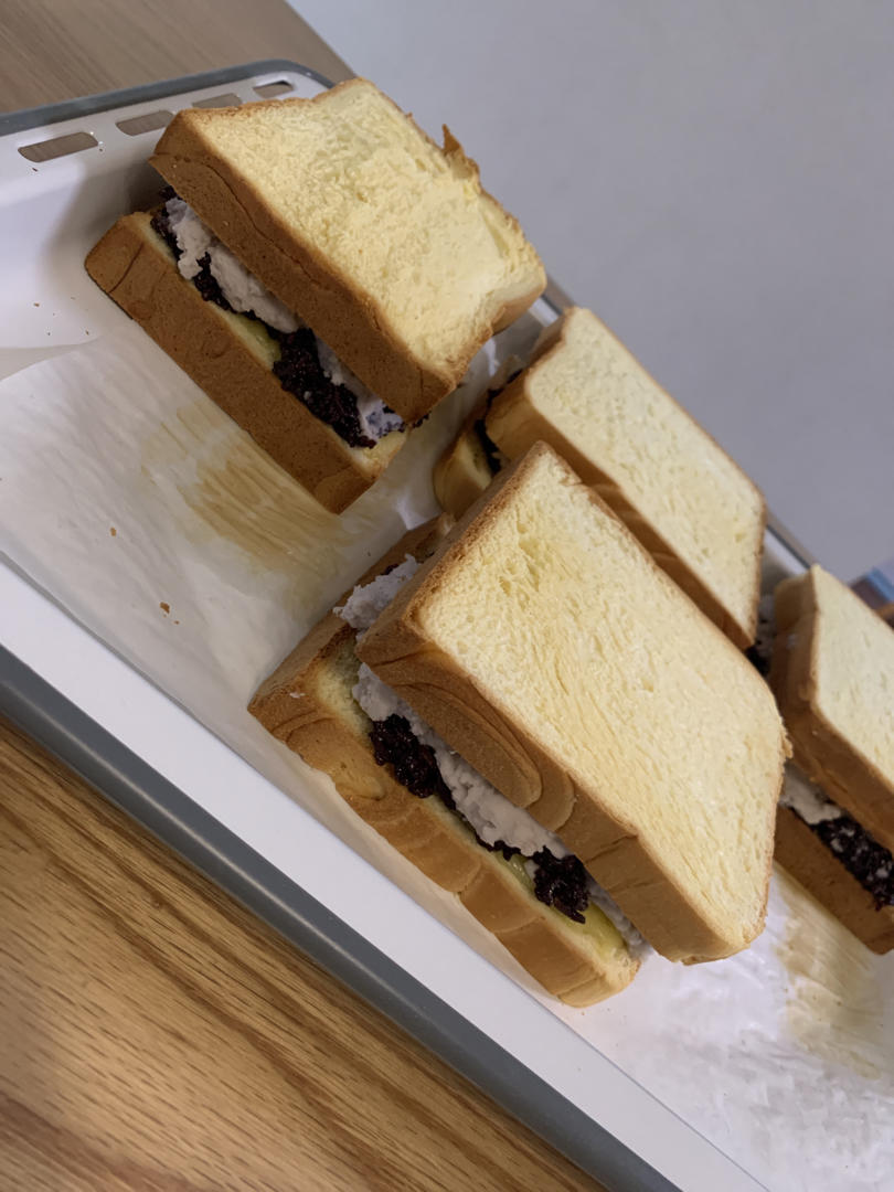 marinelddldd 做过 低卡版网红紫米面包/紫米乳酪三明治(附自制炼乳做法) |#Healthybreakfast# 紫米芋泥芝士三明治,紫米150,糖8,椰子油10,芋头400克,糖18,盐一点,奶80,奶油50,一共四个三明治 2022-10-22