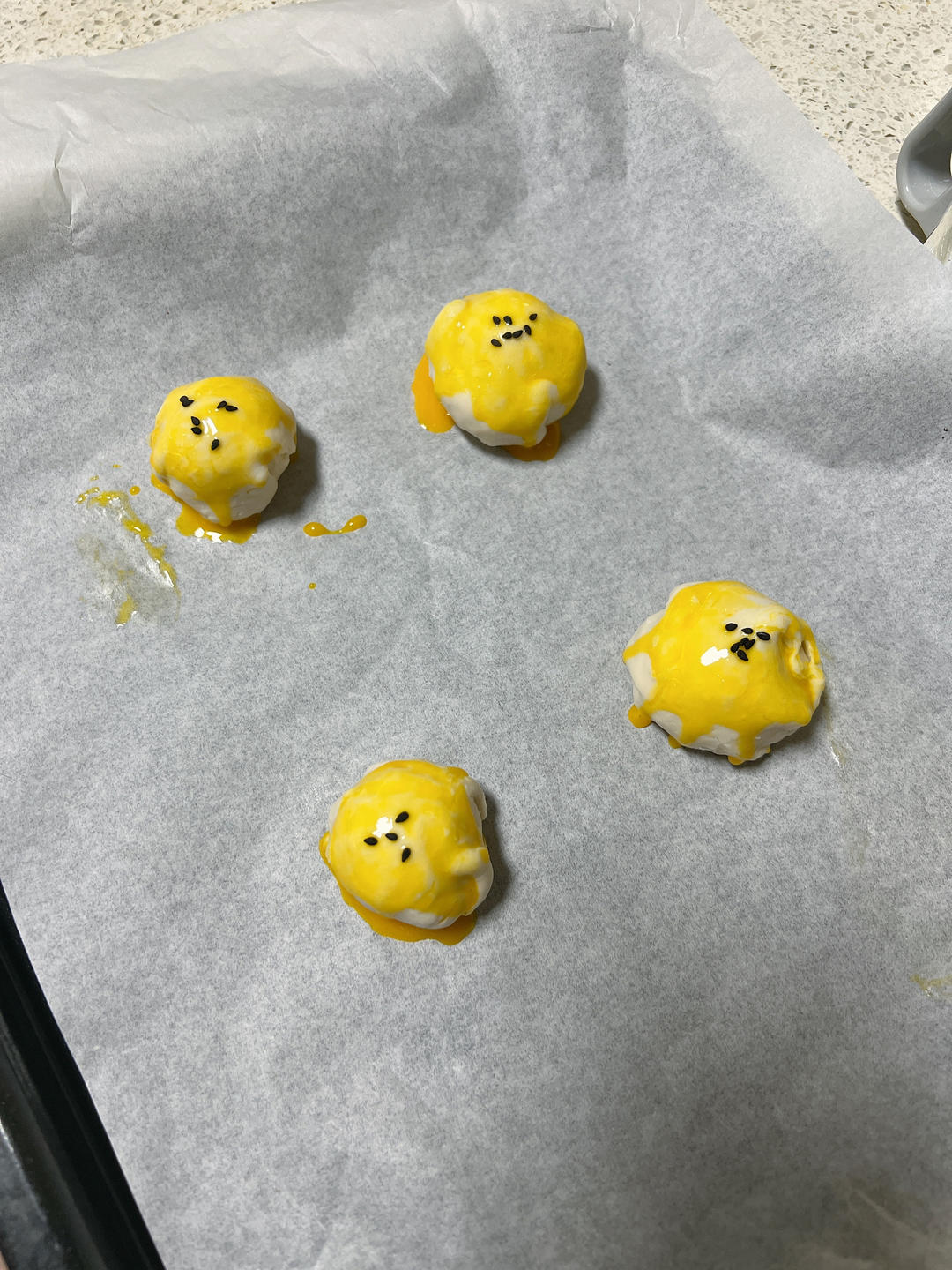 芒目丶 做过 2022年11月08日 疫情中的三人三餐:翻车合集3:手抓饼版“蛋黄酥”,里面裹着黑芝麻汤圆,进烤箱前还好好的,出来就全吐啦!但是味道真不错,下回只烤15分钟。2022-11-6 2022-11-08
