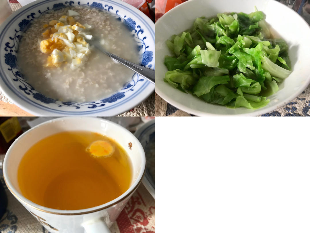 奥密克戎第五天,咽痛,主要吃流食。麦片粥、煮鸡蛋碎、拌圆白菜、蜂蜜vc水