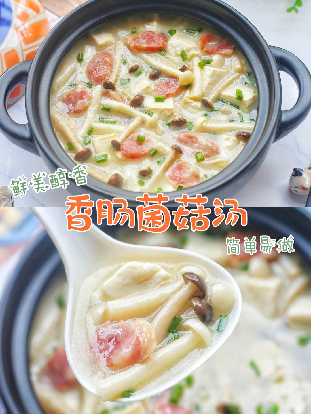 ㊙️好喝不胖!鲜美醇香,简单易做的香肠菌菇汤~
