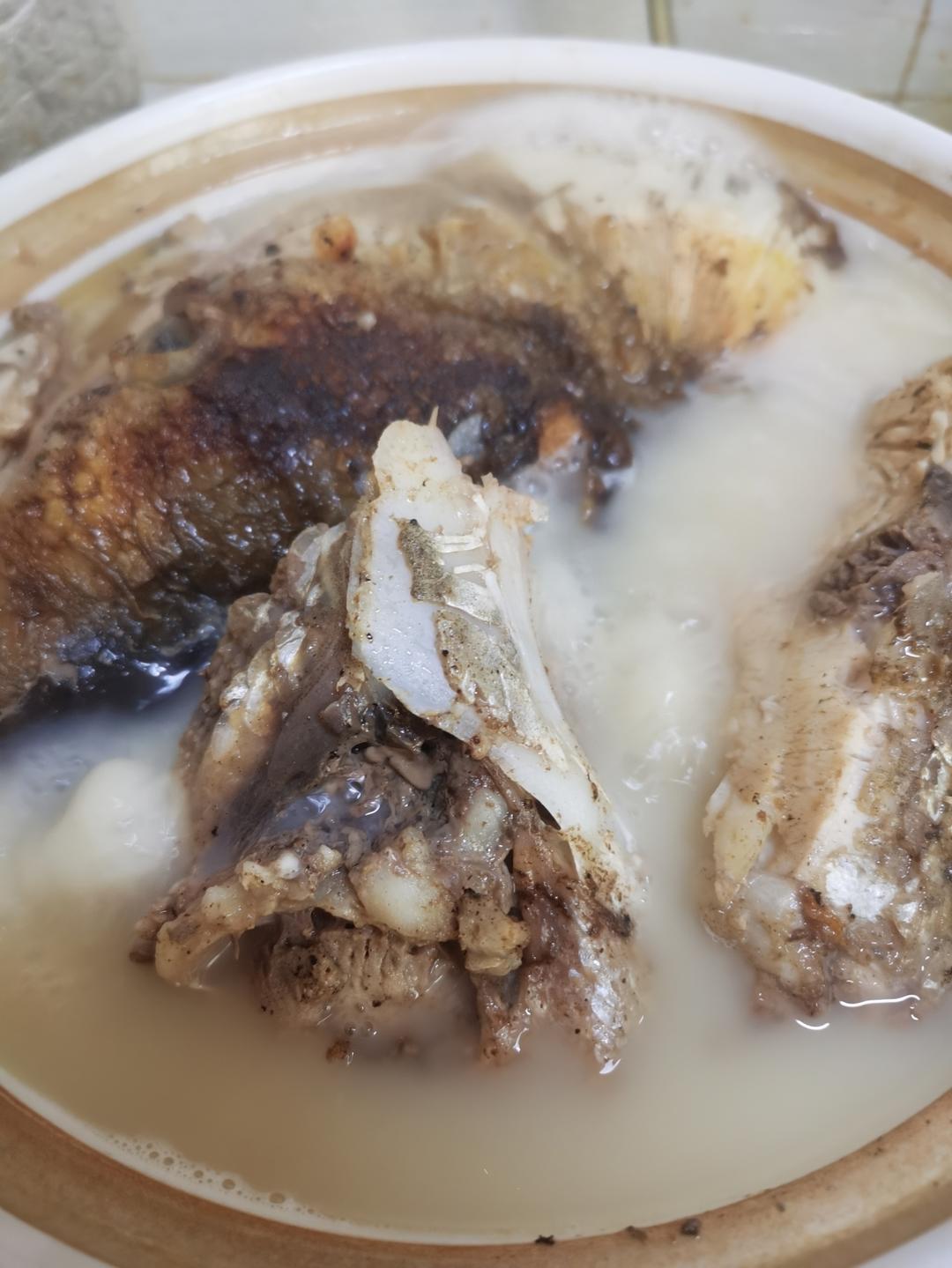 煎的有点焦了,但是汤很白😁😁😁