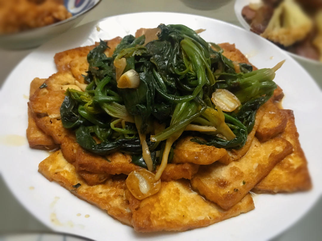 SophiaHe0216 做过 菠菜豆腐 第一次煎二面黄,豆腐切的1cm左右,煎出来有点点薄,厚一倍应该会更好吃。另外加了点蒜瓣,最后蚝油和淀粉一起下锅勾的芡汁。儿和老公都说好吃!谢谢!#晚餐•2023年1月29日# 2023-01-29
