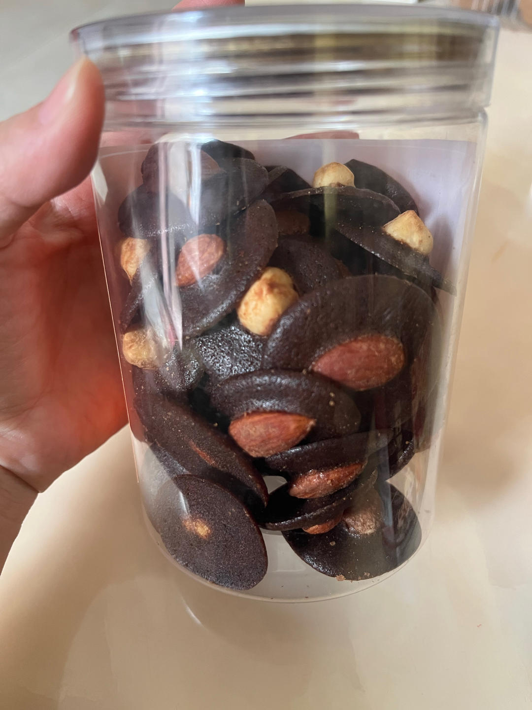 小烤箱一次只能烤这么多,上下140度烤15分钟,非常脆,坚果用巴旦木更好吃