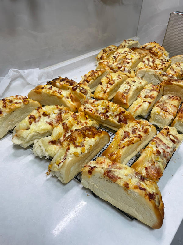 3.配料千万不要贪多!!!!尤其是芝士!!会溢出来焦化在模具上…最终导致无法脱模!!等费劲吧啦把面包抠下来了面包体全都塌+变形丑到不忍直视…
