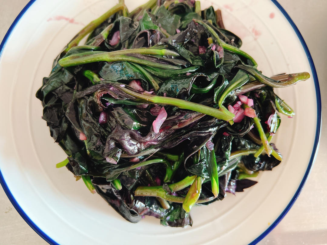 今天吃素:蒜蓉紫背菜、凉拌沙葱、蒜蓉龙豆、花椒芽蛋饼;全炫了超香!菜谱都有发过哦