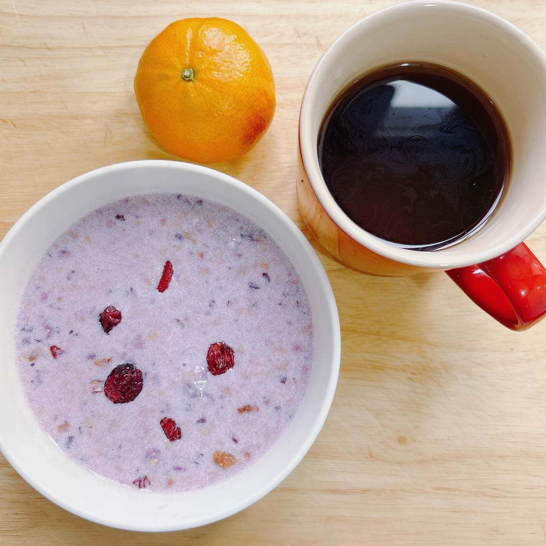 轻食早餐:魔芋奶昔+美式咖啡☕️+小橘子