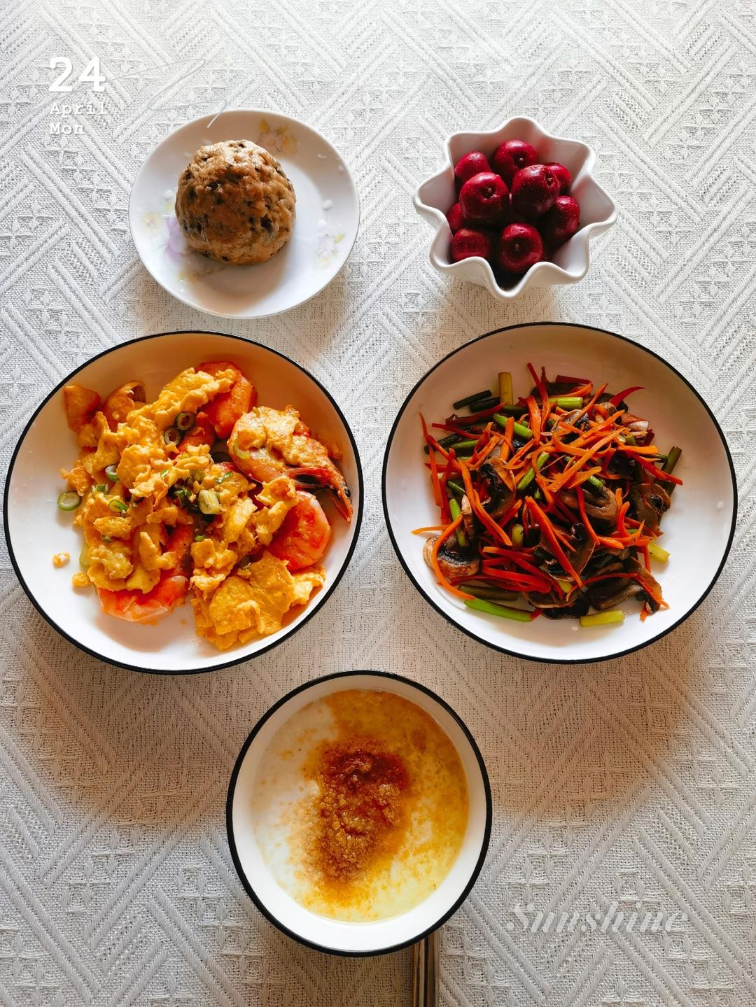 臻浠 做过 2023年04月24日 20230424早餐炒蒜苗胡萝卜口蘑青岛大虾滑蛋,洗盘子耽误了看火候儿,滑得有点儿老[呲牙]丑八怪山药红豆馒头自制益生菌酸奶+小麦胚芽+亚麻籽油甜山楂 2023-04-24