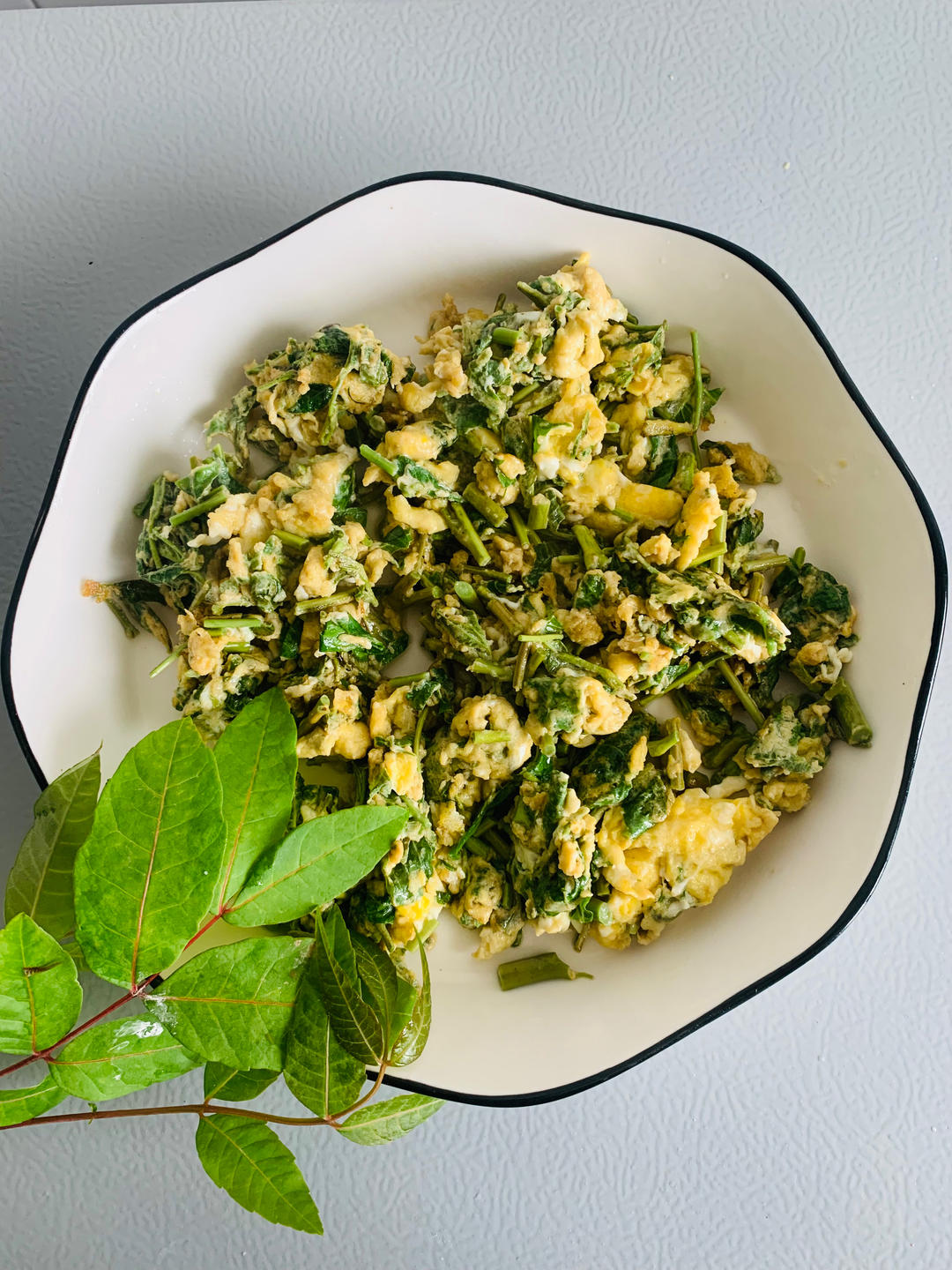 撒野摘来的香椿,炒几个鸡蛋,夹个馍再次出发去撒野……