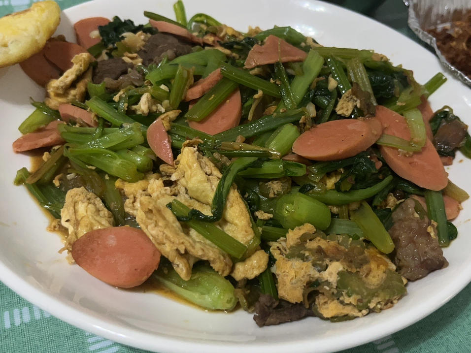 最快手的小白菜火腿炒鸡蛋