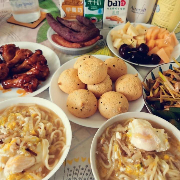 小厨房大品味 做过 7月早餐马拉松 七月早餐马拉松打卡D4肉丝鸡蛋面麻薯,奥尔良烤翅水果早上好☀️https://www.xiachufang.com/ad/events/redirect_custom_url?rcu_variety=marathon">#定格我的早餐瞬间# #早餐•2023年7月4日# 农五月十七🍰 2023-07-04