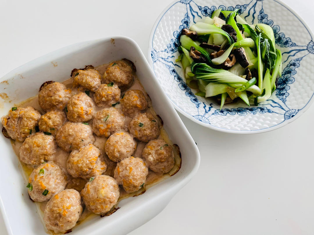 海燕的食品实验室 做过 健康快手的 - 烤肉丸子 终于吃上米饭🍚啦!已经有超过9天没有吃米饭了,今天终于说服孩子,该吃米饭了。😂- 烤肉丸子🍡- 蚝油香菇油菜🥬#晚餐•2023年7月17日# 2023-07-18