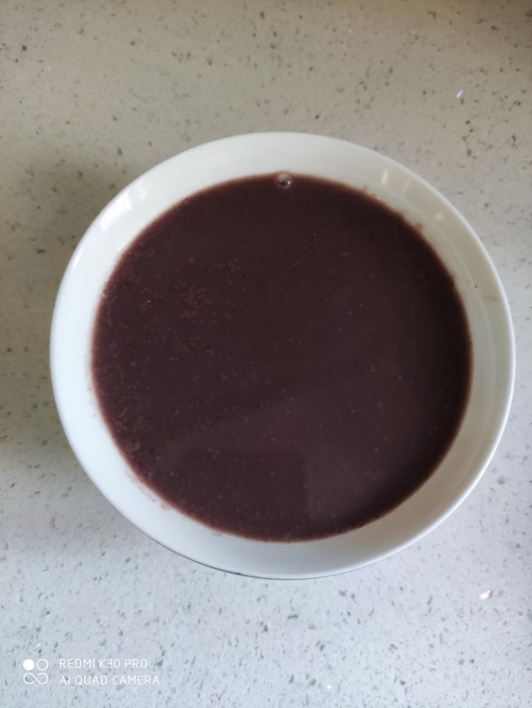 满满一把黑米,一小把糯米,一小把黑芝麻,两颗红枣,两个核桃。加水到豆浆机上限。没有黑枸杞和桑葚的黑米糊,今天浓度刚好。