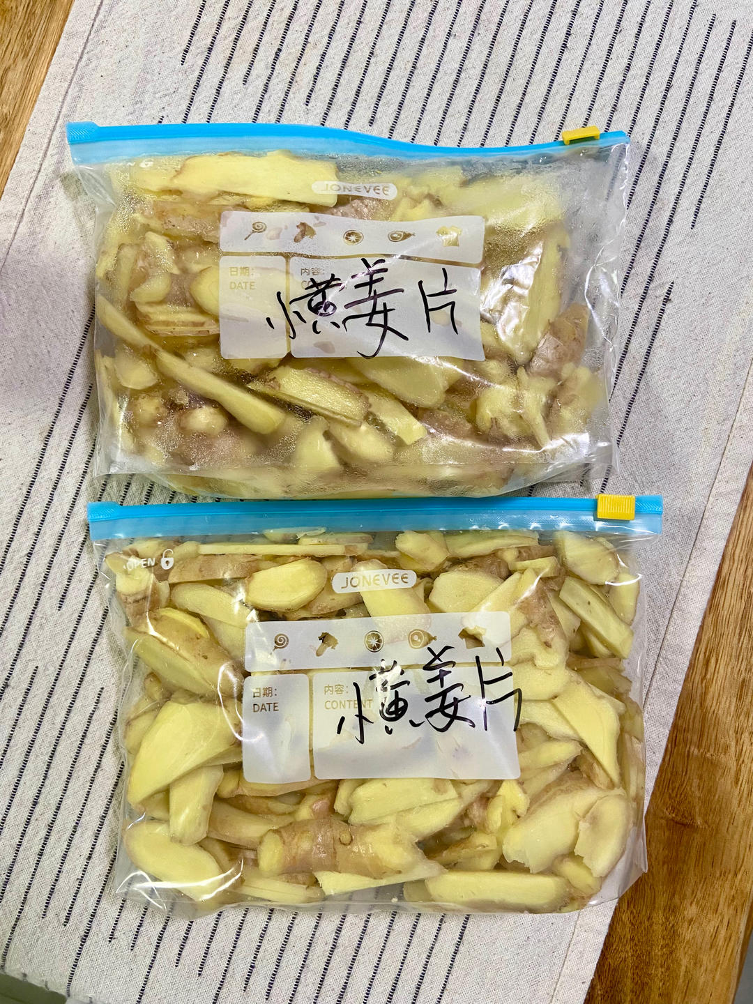 泡、刷洗干净,切片,冰冻起来