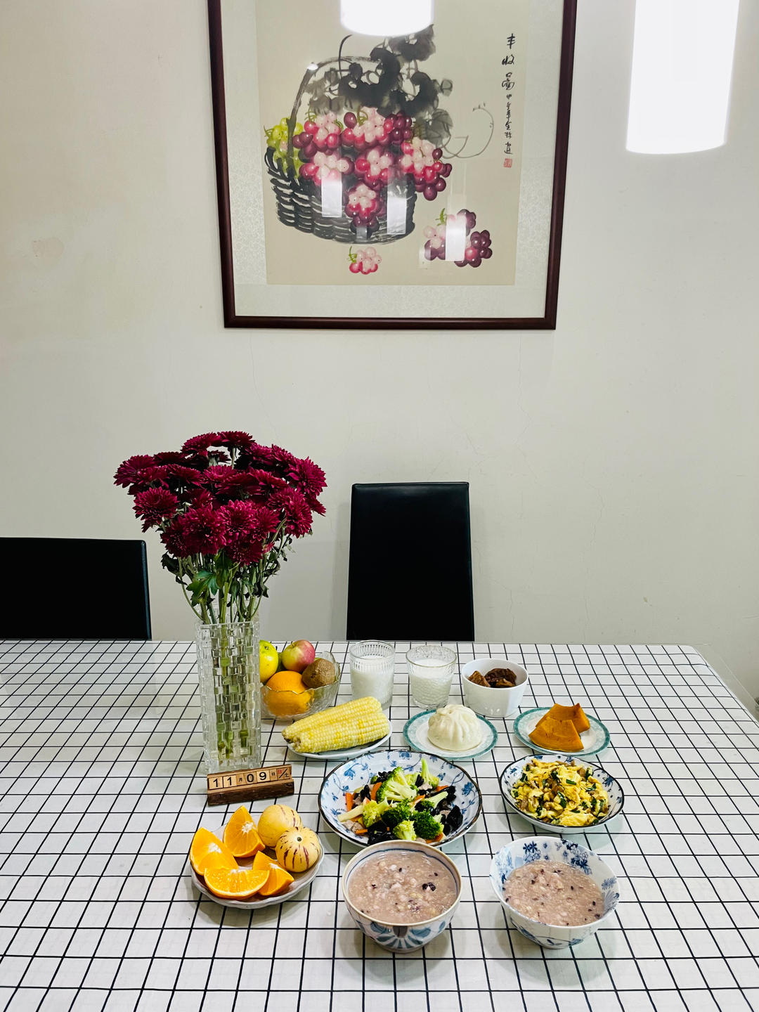 B妈小厨 做过 夏天吃的清淡点清炒黑木耳西兰花 20231109 星期四 农历九月廿六一餐一食皆是用心准备认真做早餐🍳开启一天的美好早餐早起先炖杂粮粥小米黑米薏米燕麦米芡实大米胡萝卜🥕西兰花🥦黑木耳冬笋片肉片自己家的韭菜炒鸡蛋🥚蒸玉米🌽南瓜和肉包油头腐烧肉鲜牛奶🥛橙子🍊人参果#早餐•2023年11月9日# 2023-11-09