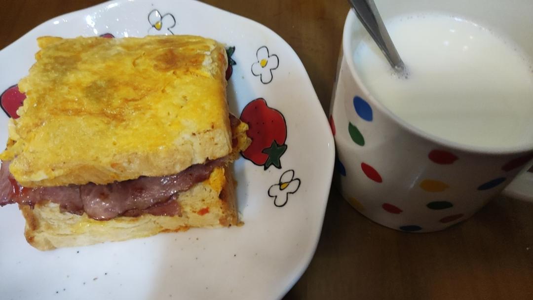 今天早餐芝士培根煎蛋三明治😍