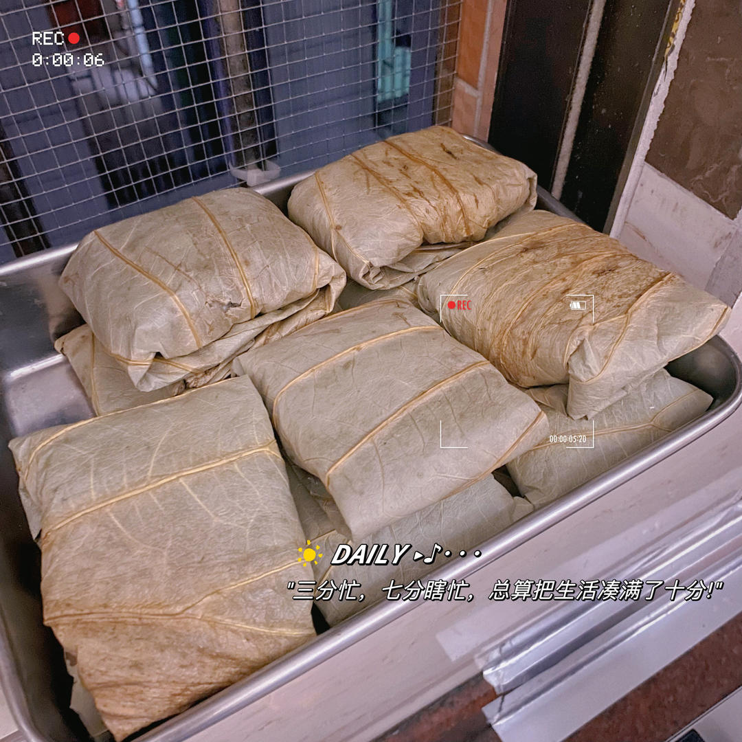 350克糯米,一个鸡腿,一根半腊肠,包了10只糯米鸡出来