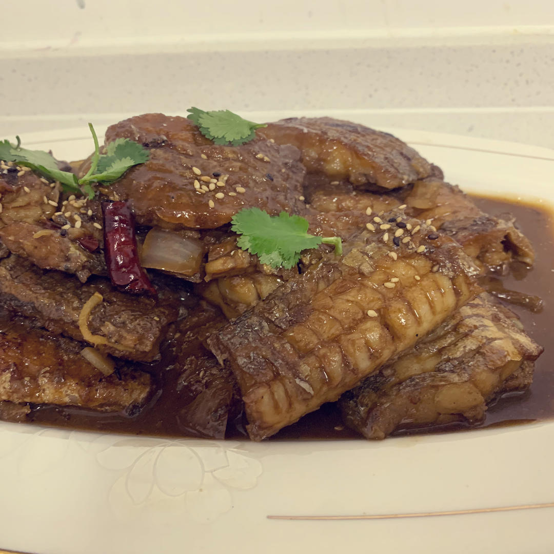 红烧带鱼,豆角炒肉,番茄土豆丝