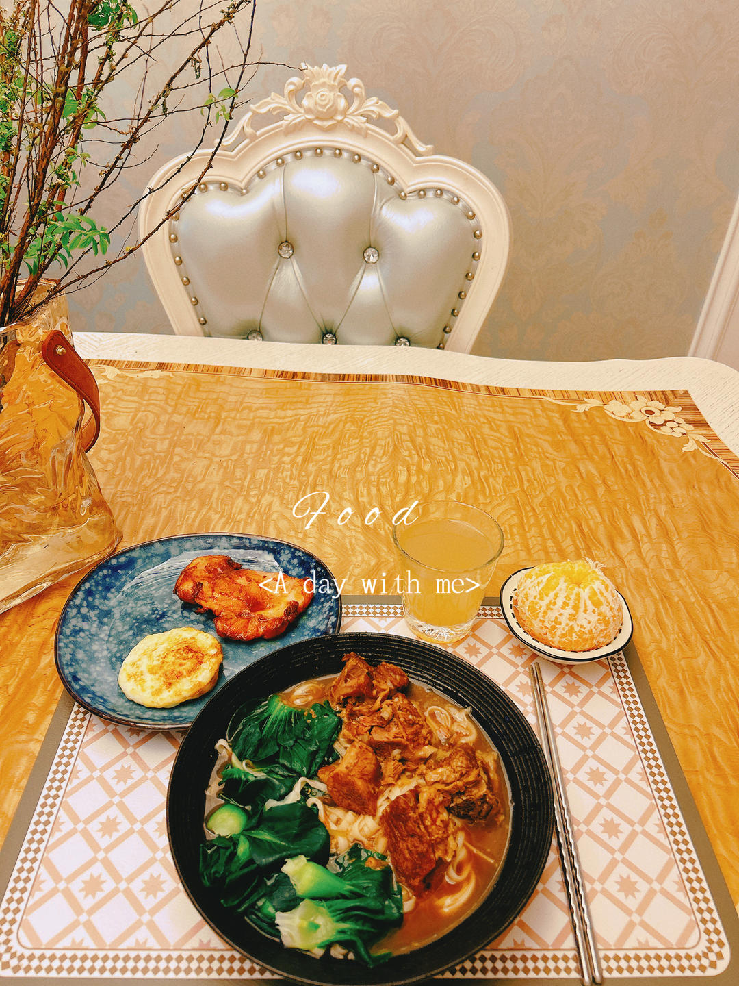 Day93~红烧羊肉面➕🥚鸡扒➕耙耙柑➕青柠汁