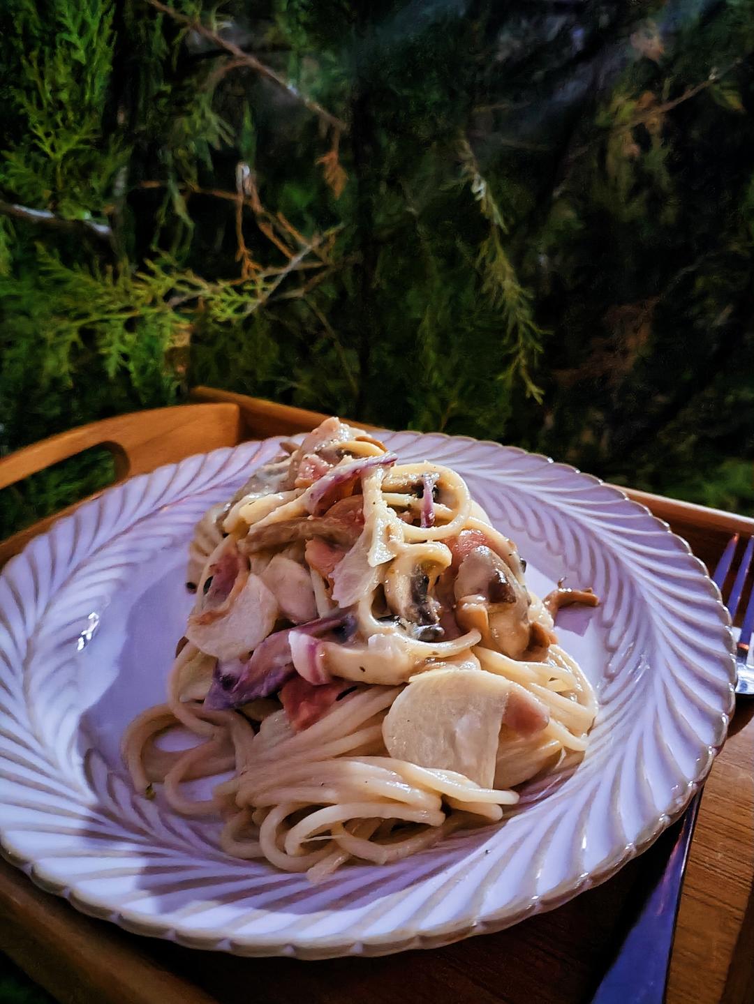 奶油蘑菇培根意面🍝成功了~