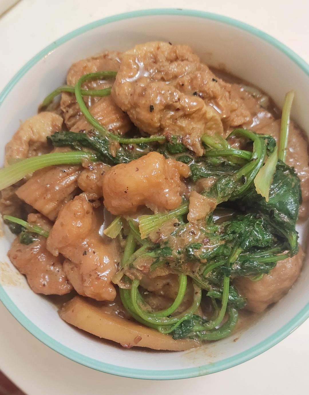 挺好吃的,加一丢丢盐更好。煮得太多,两大碗,没剩下什么汁。