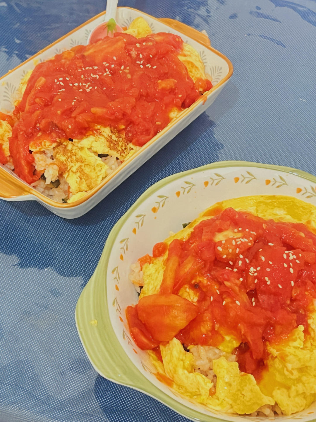 削不会 做过 诱人番茄酱蛋包饭 蛋皮没煎好,下次注意火候,难道是搅太猛了🤔里面的饭可以适当多放点调料更有味,这次蒸的,中途放调料导致饭没蒸太好,尽量开头一次放完中途不要翘盖盖;下次炒看看。番茄可以再溶一点 2024-04-28