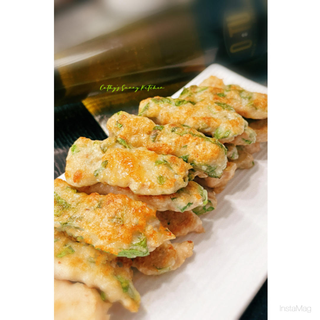猪肉山药蛋清打成泥,拌入蔬菜叶,少量生抽胡椒盐调味。平底锅煎上色,小白也能做的简单料理。