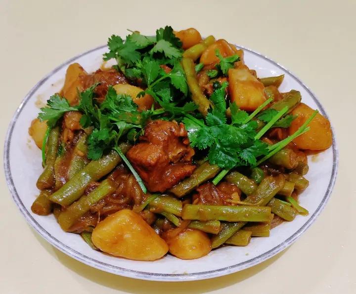 旭日东升168 做过 东北名菜——排骨粉条炖豆角 南方人学做东北名菜首秀,排骨和豆角先焯水,再冲洗,广州人称之为“过冷河”,排骨和土豆🥔加了点碎冰糖和白醋先焖一会,再放豆角,味道不错!感谢方主分享!#午餐•2024年7月20日# 2024-07-20