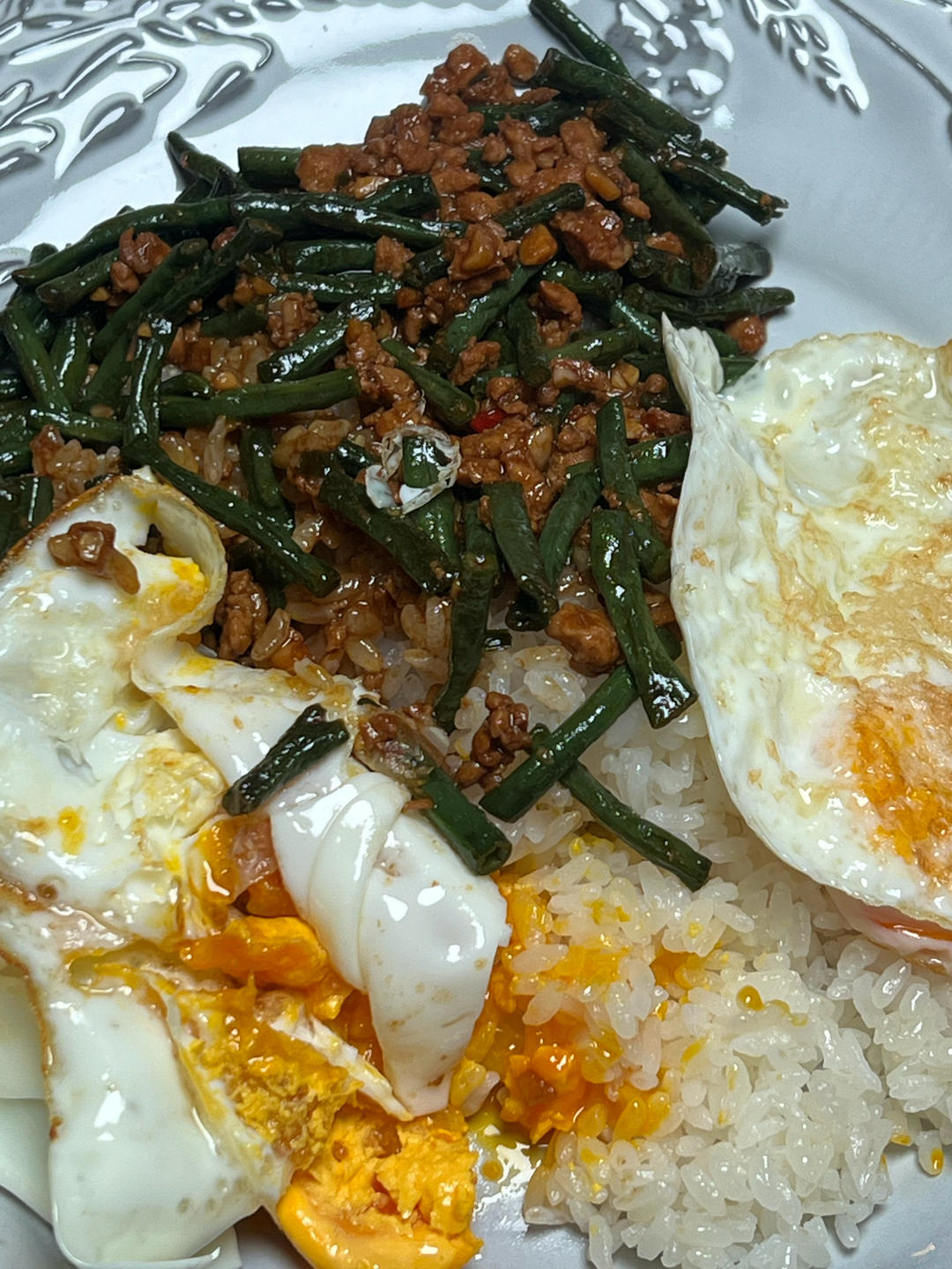 土著居民爱吃面 做过 肉末豇豆拌饭 #肉末豇豆拌饭# 1️⃣备料:里脊肉、豇豆切段、蒜末、小米辣、葱花、鸡蛋2️⃣肉末:一勺料酒➕两勺生抽➕一勺白糖➕一些白胡椒➕一勺淀粉 腌10分钟3️⃣炒肉末:热锅凉油,下肉末,迅速打散,大火炒熟➕一圈蚝油➕一圈老抽➕一圈生抽➕一勺料酒 称出备用4️⃣炒豇豆:葱蒜小米辣炒香➕豇豆大火炒熟(多炒一会)➕盐➕松茸鲜5️⃣一起:豇豆炒熟➕肉末一起➕生抽➕蚝油➕糖➕老抽,出锅前➕水淀粉 2024-08-28