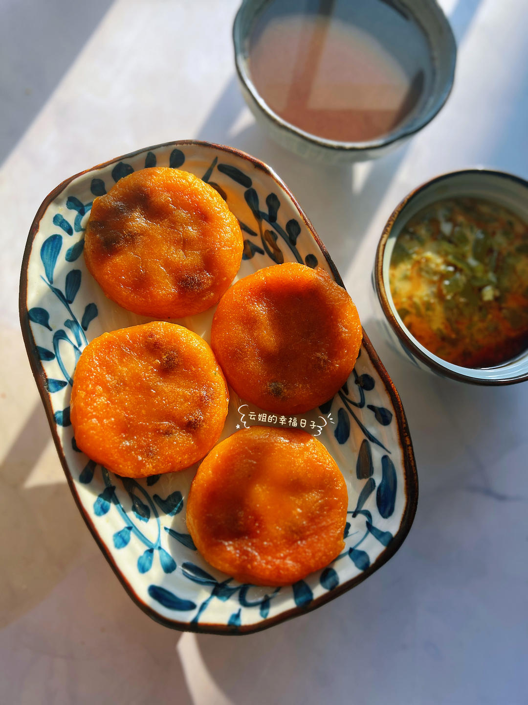 秋阳透窗洒,蜜豆南瓜甜。
