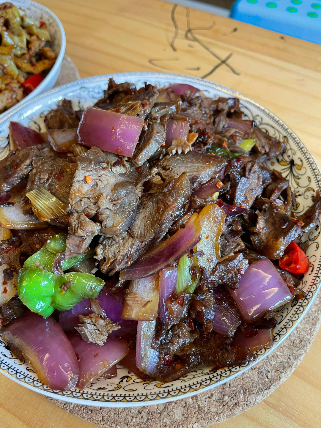 炒卤牛肉、脆黄瓜皮炒肉、泡面
